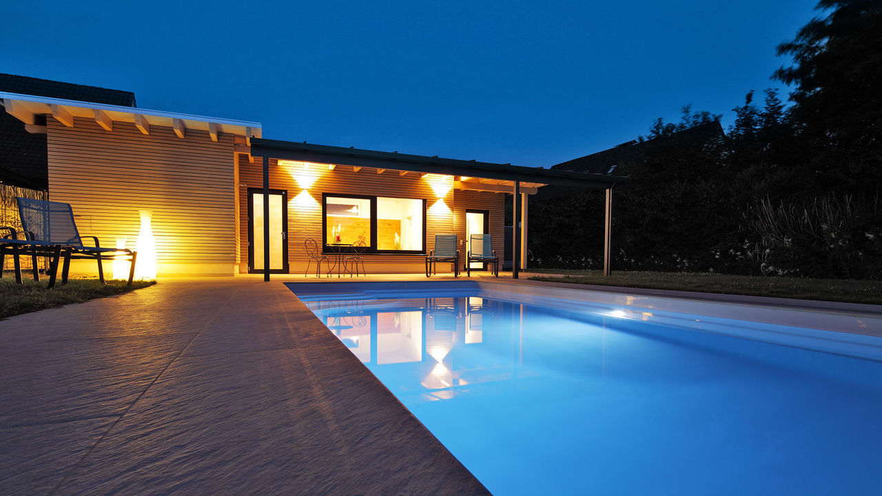 Im hinteren Teil des Gartens befindet sich ein beheizter Pool, der von morgens bis abends in der Sonne liegt. Mit seinen ca. 8 x 4 m lädt er nicht nur Kinder zum Planschen ein, sondern dient auch zur idealen Abkühlung für zwischendurch. Durch seine zuschaltbare Gegenstromanlage eignet er sich auch bestens für sportliches Schwimmen.