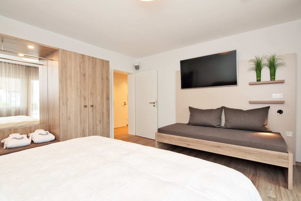 Die Residenz Markgraf in Staufen – Grunern bietet Ihnen Platz für bis zu 6 Personen und beinhaltet zwei Schlafzimmer, ein Wohnzimmer, eine Küche, ein Bad mit WC, sowie ein separates WC.